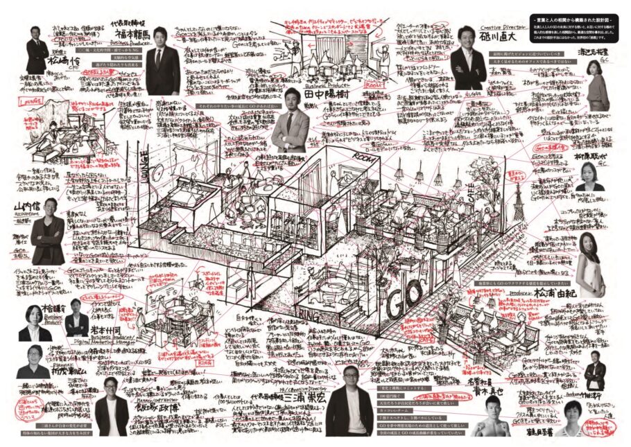 ある社員にとっては1つ1つが真剣勝負の試合であり、ある社員にとってはプロポーズであり、ある社員にとっては密談や裏工作の場であった。そのため3つの会議室は、「リング」「ラウンジ」「ステージ」としてデザインを行った。