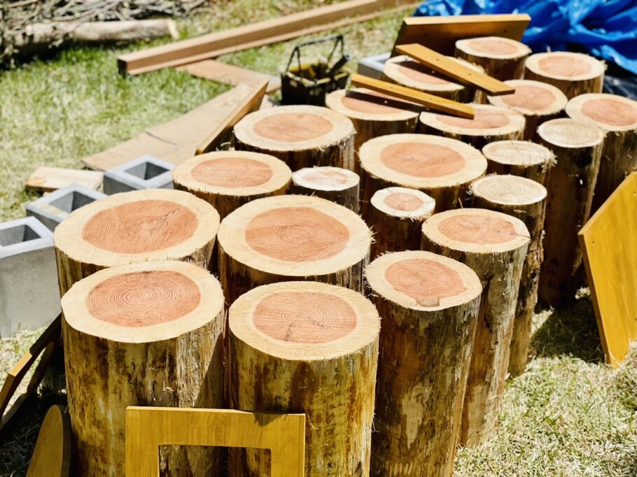 総勢50名ほどの参加者とともに、雑草だらけの斜面地の庭をアスレチックに、富士山が見える芝生平面庭をベンチ&柵をつけてキャンプ場に、無法地帯だった花壇を家庭菜園スペース+コンポストに、伊豆の山並みが見渡せる自慢のテラスを回遊導線にリノベーションしました。