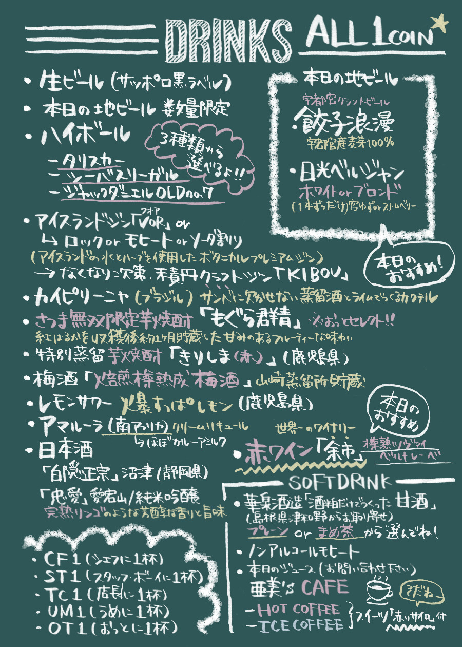 世界や日本を旅する中で見つけた美味しいものをお届けするためのメニューをひとつひとつ手づくりし、1日シェフ、1日店長、バーテンダー、ボーイを引き受けていただいた仲間たちと、場の仕組みから運営までをすべて手掛けました。